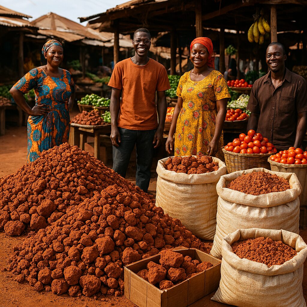 Bulk Bauxite sourced from West Africa (Guinea). Known for its high alumina and low silica content, it is the premier feedstock for the Bayer process in aluminum production.